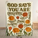 Immerse yourself in the embrace of our God Says You Are Retro Birth Flower Blanket, designed especially for those looking for a personal treat. This blanket offers unique bonding experiences as its design aims to remind you of your inner worth and beauty, subtly hinting at the message ‘God Says You Are’. Ideal for curling up with a good book, watching your favorite movie or simply relaxing, the blanket’s warmth physically symbolizes the emotional warmth its message holds.